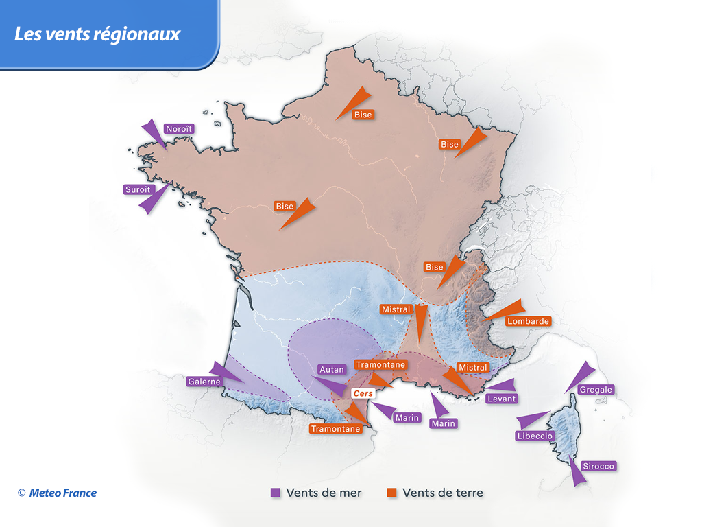 Les vents régionaux - Noms locaux des vents de terre ou de mer