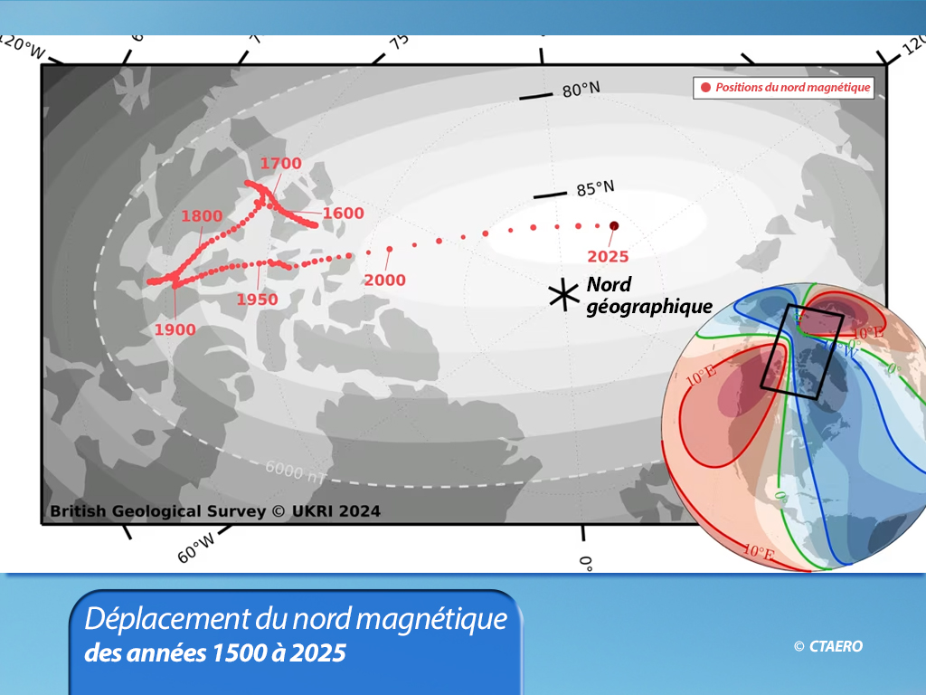 Le nord magnétique - L'évolution de la position du nord magnétique